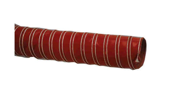 Schlauch für hohe Temperaturen und das Ansaugen von Heißluft und geringe Mengen von nicht-abrasivem Staub. Dünne Innenseite aus Stahl, umfasst von Glasfaser und Neopren.