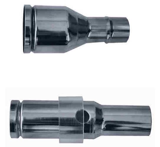 Reduzierter Rohranschluss aus verzinktem Stahl oder in Edelstahl (X) mit Innenkante für eine Befestigung mit dem Schnellanschluss und Außenkante für die Verbindung der Muffe des flexiblen Schlauchs mit unterschiedlichen Durchmesser gegenüber dem Sauganschluss.
