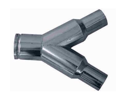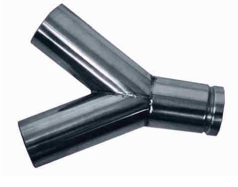 Rohranschluss aus verzinktem Stahl oder in Edelstahl (X) mit Innenkante für eine Befestigung mit dem Schnellanschluss und reduziertes Y-Stück für die Verbindung mit 2 flexiblen Schläuchen.
